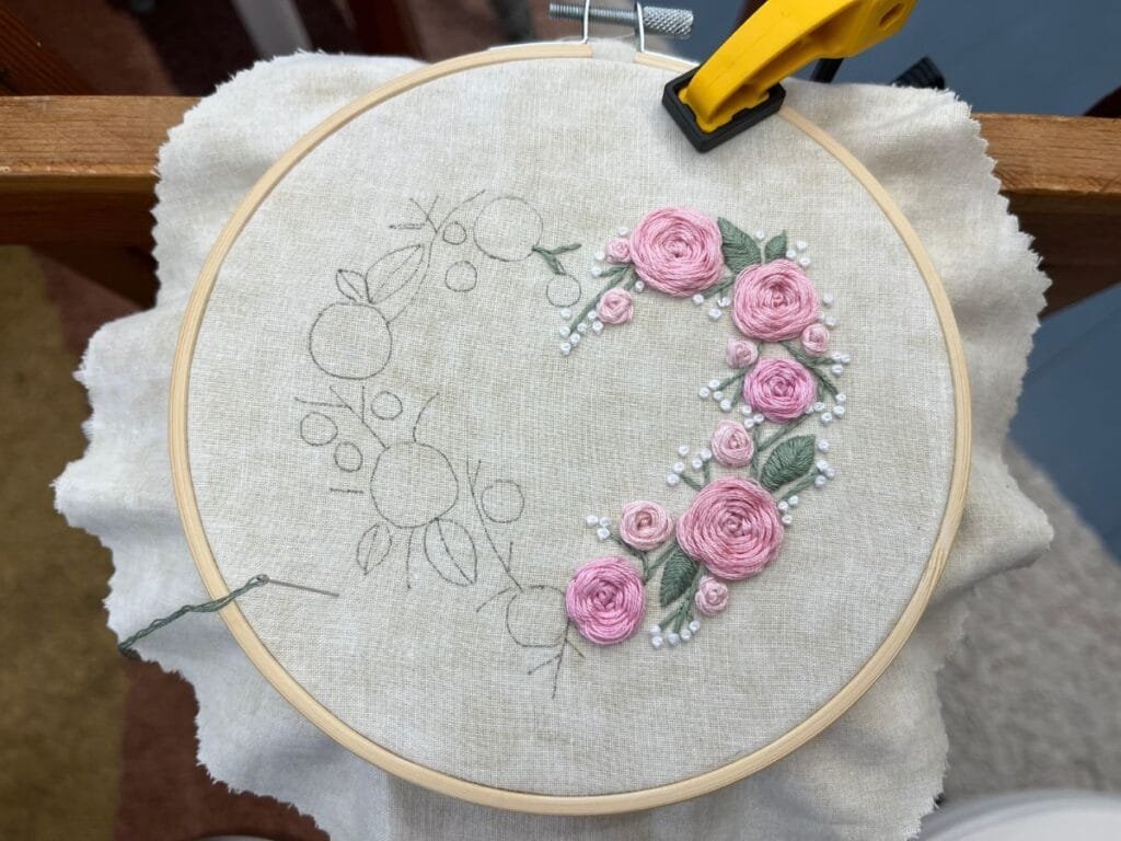 Embroidery can go beyond the hoop. In fact, when a stitched piece becomes an ornament, it tells a story of care and focus. This heart now hangs as a small sign of creativity during the winter season.